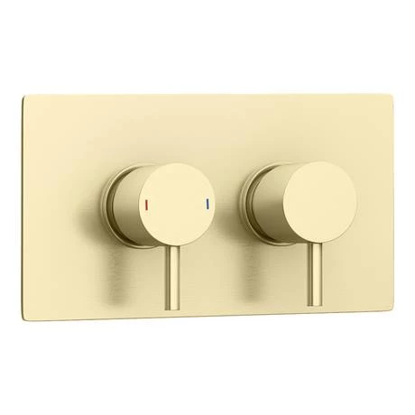 The on-trend Arezzo brushed brass round range brings substantial elegance to the modern bathroom. Package includes a concealed thermostatic shower valve with diverter, fixed shower head and 4 round body jets. The shower valve offers thermostatic showering via two easy-to-operate controls for temperature and flow, integrated diverter switches the water between two shower accessories (overhead shower head or body jets). The ideal solution for multi-option showering.