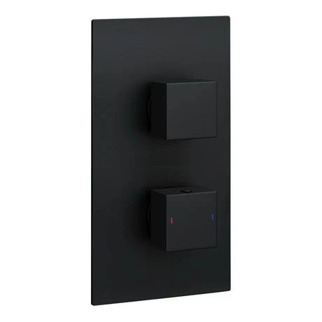 This minimalist matt black square Arezzo concealed thermostatic valve will compliment any modern bathroom suite, offers thermostatic showering via two easy-to-operate controls for temperature and flow. Supplied with a ultra thin fixed square flat rainfall Shower head.