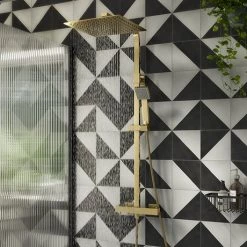 The Arezzo Brushed Brass Thermostatic Shower system offers both the flexibility of a lightweight handset and the extravagance of a square 300 x 300mm fixed overhead drencher. This premium brushed brass thermostatic shower comes complete with the newest ceramic disc technology and is easy to install. Featuring brushed brass shower fixtures in a contemporary square design, it will make a sophisticated centre piece in your wet room or bathroom.