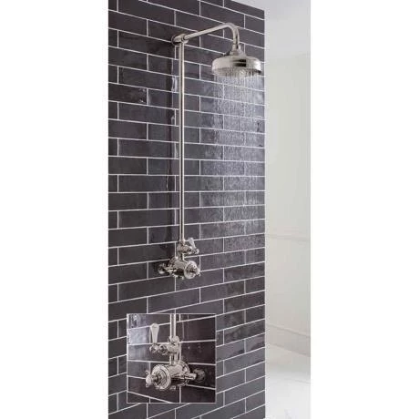 This thermostatic shower valve with fixed head is a traditional style from the Belgravia exposed valve collection. Its timeless and elegant design will make this a centrepiece for any traditional bathroom. Features an advanced thermostatic Vernet cartidge and smooth diverter which brings together function and superior style. Available with an 8″ fixed head as standard or add a touch of hotel luxury to bathrooms by upgrading to a 12” fixed head, the ultimate style statement for homes.