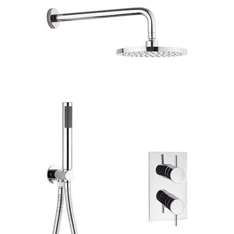 This Kai complete shower bundle from Crosswater will transform any contemporary bathroom with its sleek and trendy design. The bundle consists of a 2 outlet shower valve, 200mm shower head and arm, wall outlet elbow, shower handset and hose. The thermostatic shower valve features an in built anti-scald device to protect you and your family. All Crosswater thermostatic showers use only the highest quality ceramic discs which deliver precise temperature and flow control, even after years of prolonged use.