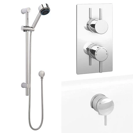 This modern Cruze concealed shower package will compliment any modern bathroom suite, offers thermostatic showering via two easy-to-operate controls for temperature and flow. Diverts between two shower accessories: overflow bath filler/slide rail kit. For total flexibility, complete the look of your bathroom with one of our designer shower packages.