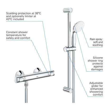 - Constant water temperature thanks to reliable GROHE TurboStat® technology
