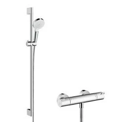 The Crometta Vario Thermostatic Shower System offers elegant design, amazing functionality and reliable quality. This complete shower system adds a touch of sophistication to any bathroom. It’s Rain spray is perfect for rinsing shampoo out of your hair while IntenseRain is perfect for setting yourself up for the day washing morning tiredness down the drain. The QuickClean rub clean nubs loosens any limescale deposits making sure your hand shower looks beautiful, and stays working for longer.