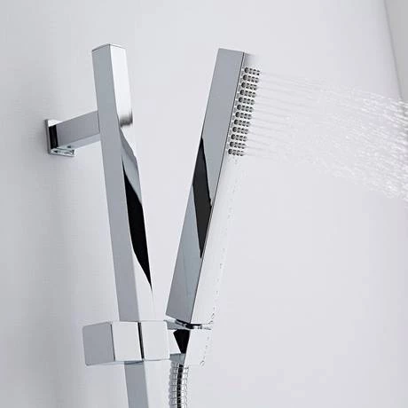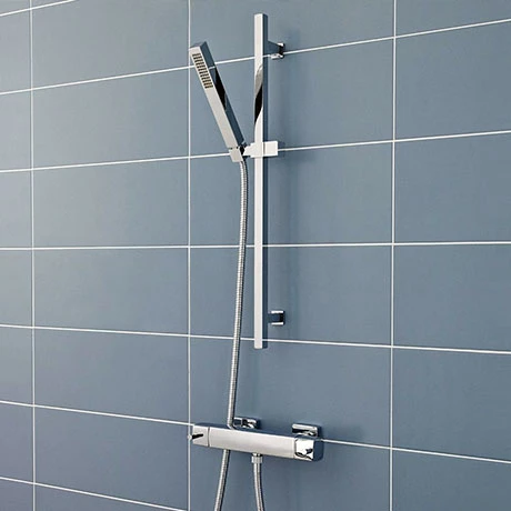 The Minimalist Quadro Thermostatic Bar Valve (Bottom Outlet) with Kubix Slide Rail Kit from Hudson Reed is part of our contemporary collection of bathroom products. The Hudson Reed Minimalist Chrome Kubix Slider Rail Kit, for total flexibility, complete the look of your bathroom with a Designer shower kit. All Kubix slide rail kits include sliding rail, shower hose and shower head.