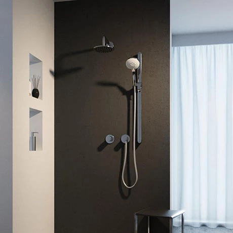 Impressive and functional, the Keuco Ixmo Square Thermostatic Shower System with Head and Slide Rail Kit offers a complete shower option. Operating the shower valve is easy and can be grasped intuitively. The water flow is regulated at the front and the temperature at the back. It also has a 38°C safety stop to prevent scalding while the shower heads are easy to clean thanks to the rub clean nozzles. It’s round design perfectly complements all other Keuco products.