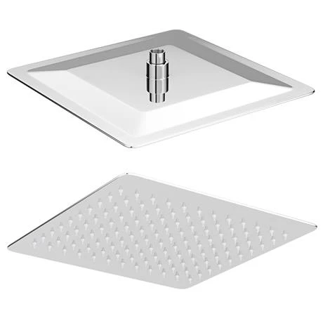 - Thermostatic shower, consisting of a square thermostatic bar valve and rigid riser kit with twin square shower heads
