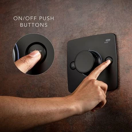 Ultra-sleek and fully-concealed, the Mira Evoco Dual Outlet Matt Black Thermostatic Mixer Shower creates a refined, sophisticated look and feel. Enjoy style as clean and luxurious as your experience – featuring a fully-concealed shower mixer and indulgent double spray heads. With innovative Mira HydroGlo technology, illuminating at the perfect temperature.