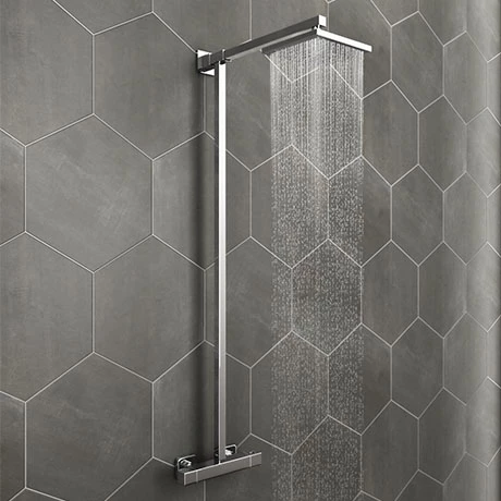 Bring clean, geometric lines to your bathroom with the Modern Square Shower and Valve. This rigid riser shower package includes a rainfall showerhead, riser and thermostatic bar shower valve, all in a contemporary polished chrome design. The valve keeps the water at a constant temperature even if someone fills a kettle in the house, and the riser draws the water smoothly up to the head when you operate the dual controls for heat and flow. Should your supply be interrupted, the unit will turn off automatically, so there’s no risk of accidental flooding or water loss.