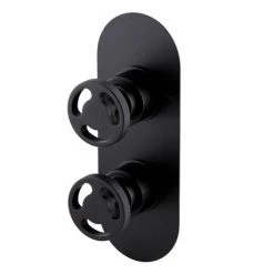 Arezzo Matt Black Concealed Individual Stop Tap + Thermostatic Control Valve with 200mm Shower Head