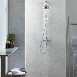 Nuie Edwardian Twin Concealed Thermostatic Shower Valve with 8″ Apron Fixed Head