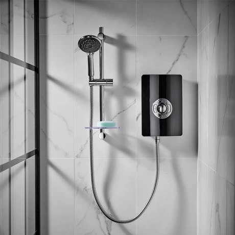 With its ultra clean lines and minimalist styling, Triton’s Aspirante is more than a shower, It’s a statement, Your statement. Whether you’re out to enhance a coloured interior, or complement your very own oasis of calm the aspirante will deliver. This model is for an 8.5 kw power supply and finished in a eye catching black gloss.